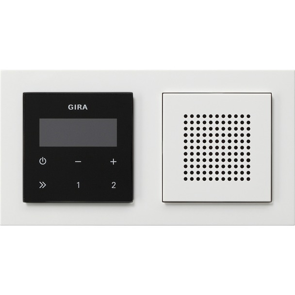 Inbouwradio RDS met een luidspreker Bedieningselement-opzetstuk in zwartglaslook, compleet met afdekraam Gira E2 (049572)