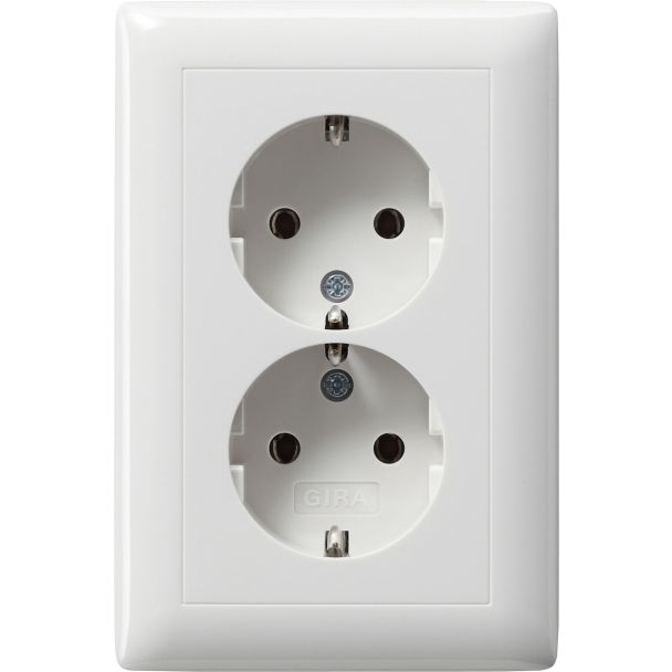Dubbele wandcontactdoos met randaarde 16 A 250 V~ zuiver wit glanzend (078203)