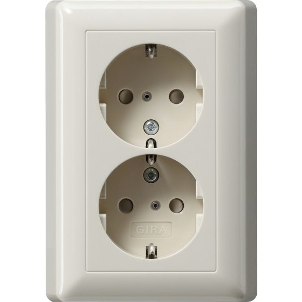 Dubbele wandcontactdoos met randaarde 16 A 250 V~ met verhoogde cremé wit glanzend (078301)