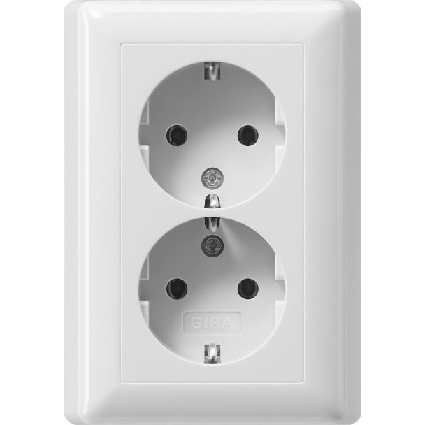 Dubbele wandcontactdoos met randaarde 16 A 250 V~ zuiver wit glanzend (078803)