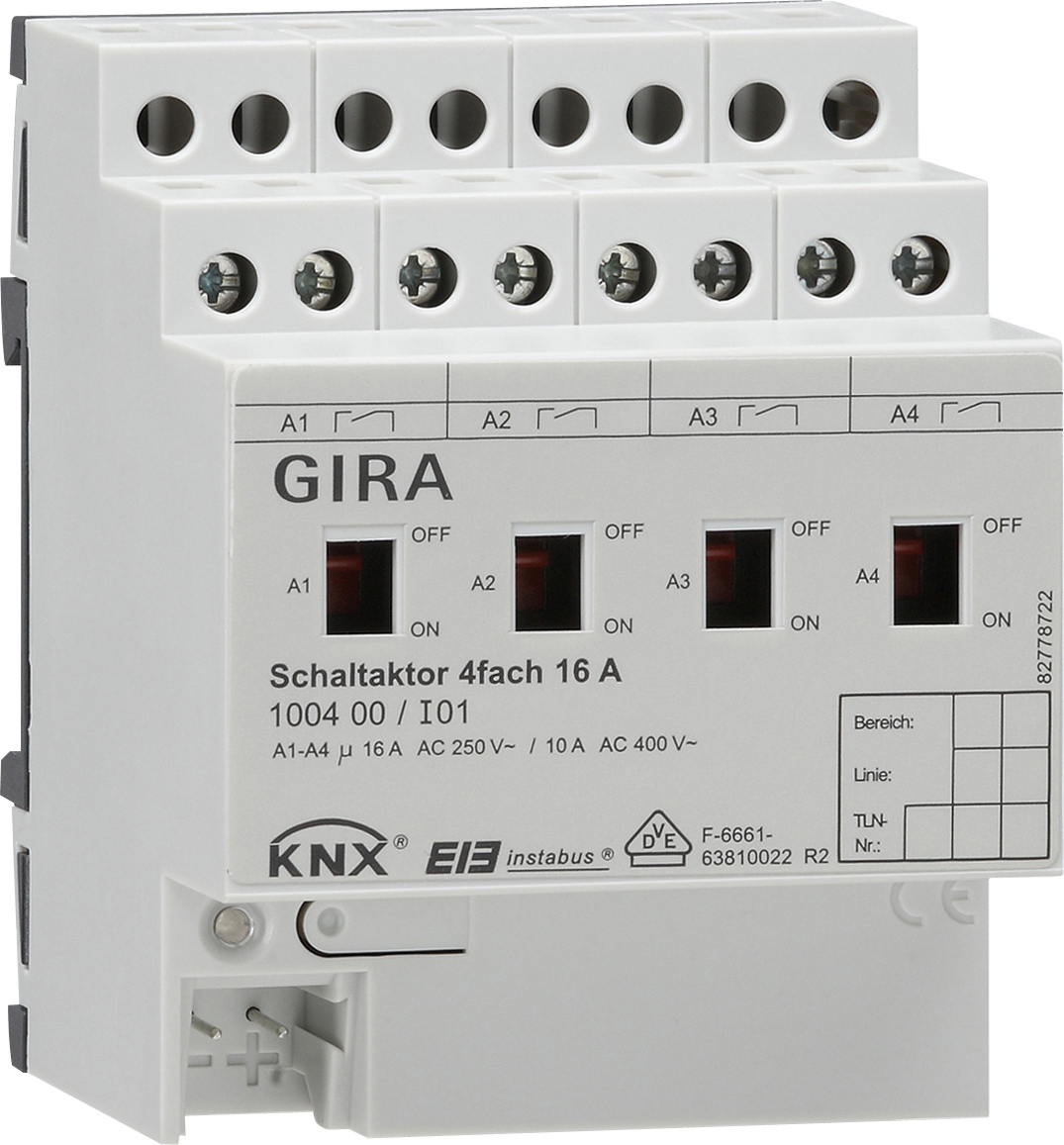 Schakelactor 4-voudig 16 A met handbediening voor KNX (100400)