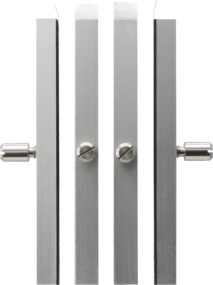 - Vier bevestigingsrails (aluminium), plakstrips en schroeven zijn bij