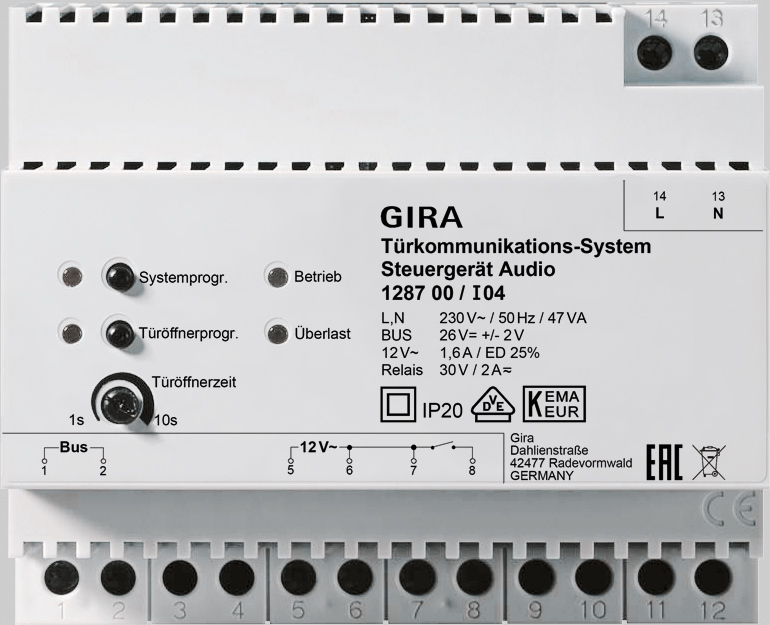 - Besturingapparaat voor voeding van de audiocomponenten van de Gira