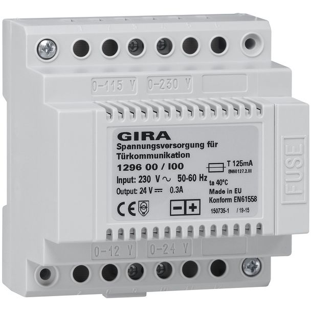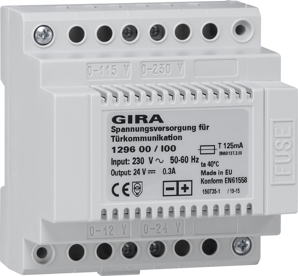 - Voeding DC 24 V voor externe voeding van de Gira One server.