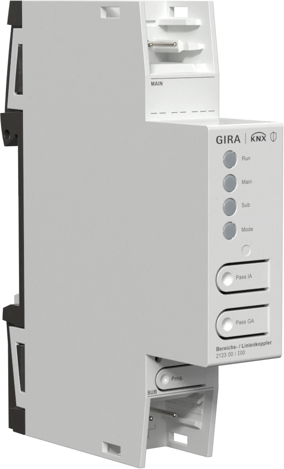 - Verbindt datatechnisch twee KNX-lijnen / segmenten / bereiken met elkaar en