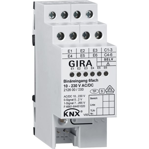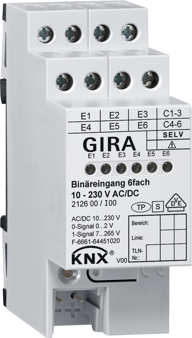 Binaire ingang 6-voudig 10 – 230 V AC/DC voor KNX (212600)