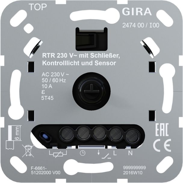 Basiselement ruimtetemperatuurregelaar 230 V~/10 A met maakcontact, (247400)