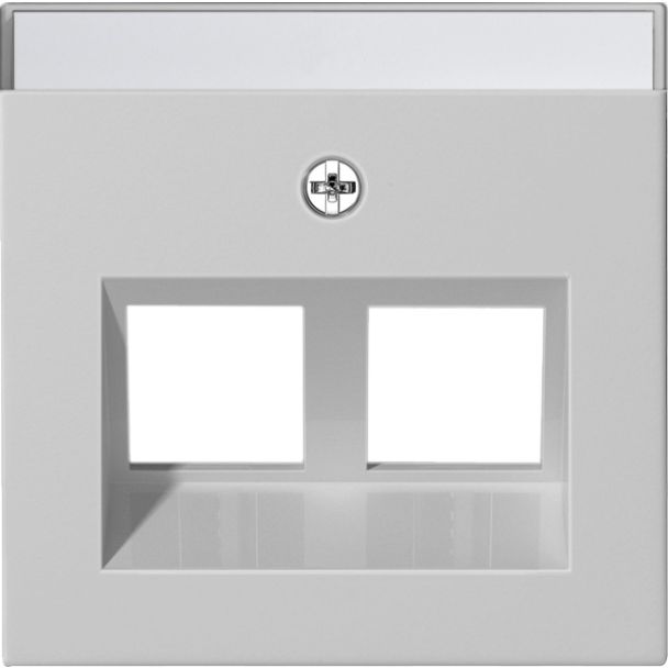 Afdekking met 30° schuingeplaatste kabeluitvoer en tekstkader voor draagring grijs mat (2640015)