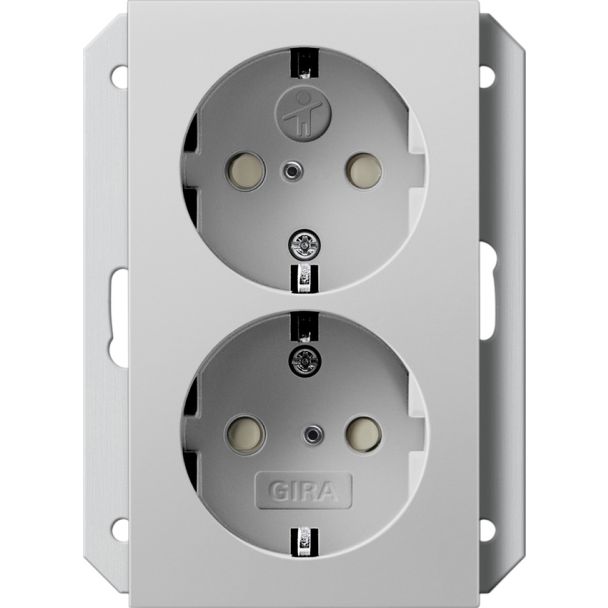 Dubbele wandcontactdoos met randaarde 16 A 250 V~ met verhoogde grijs mat (2731015)