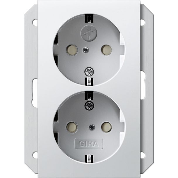 Dubbele wandcontactdoos met randaarde 16 A 250 V~ met verhoogde zuiver wit mat (273527)