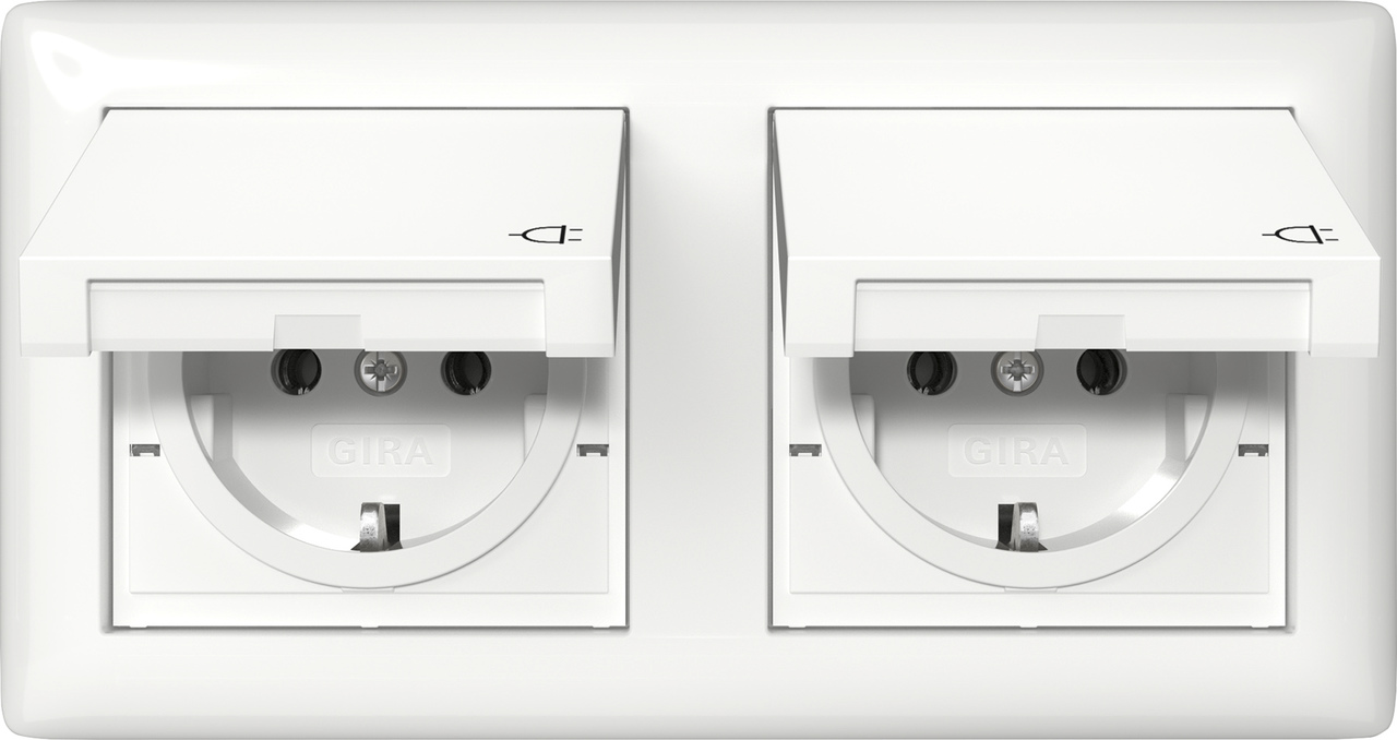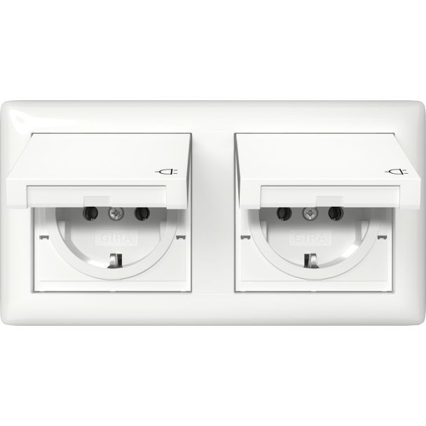 Wandcontactdoos met randaarde 2-voudig 16 A 250 V~met klapdeksel, compleet zuiver wit glanzend (415803)