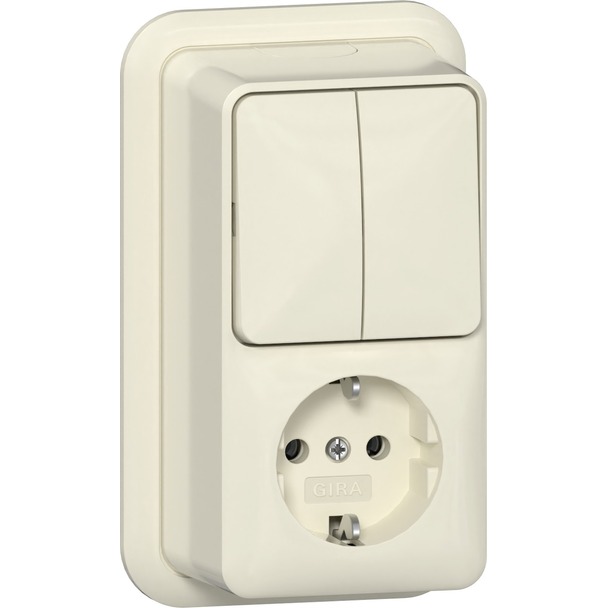 Combinatie wipschakelaar (10A) /wandcontactdoos met randaarde 16 A 250 V~ verticaal met montageplaat en adapter K/P25 Serieschakelaar (417510)