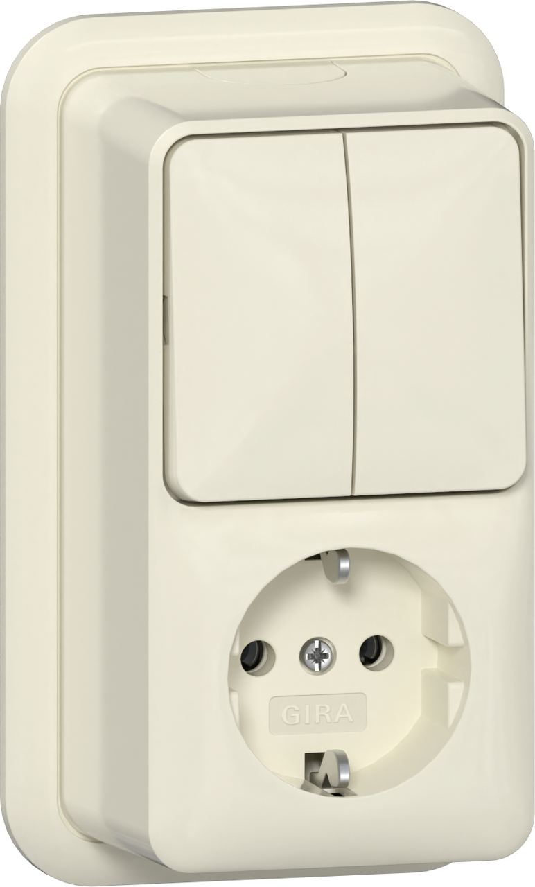 met randaarde 16 A 250 V~ verticaal met montageplaat en adapter K/P25 Serieschakelaar/wandcontactdoos met randaarde Gira System 55 crème wit