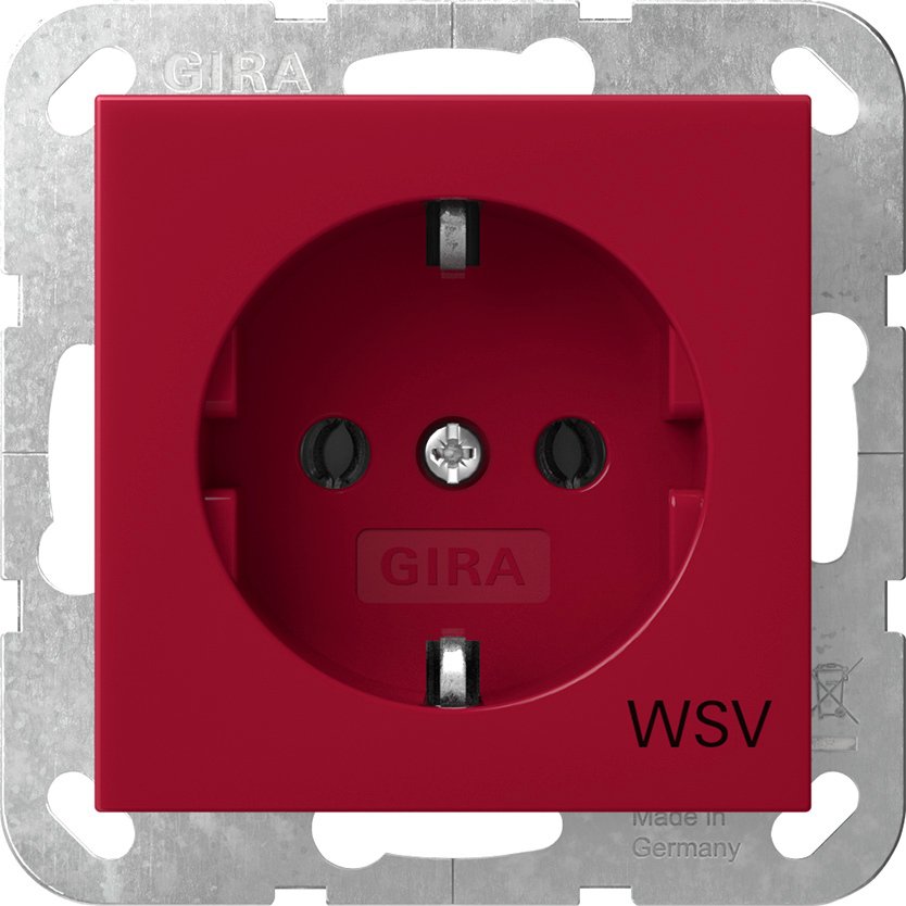 met rode afdekking en opdruk ‘WSV’(overige veiligheidsspanning) Gira System 55 rood glanzend