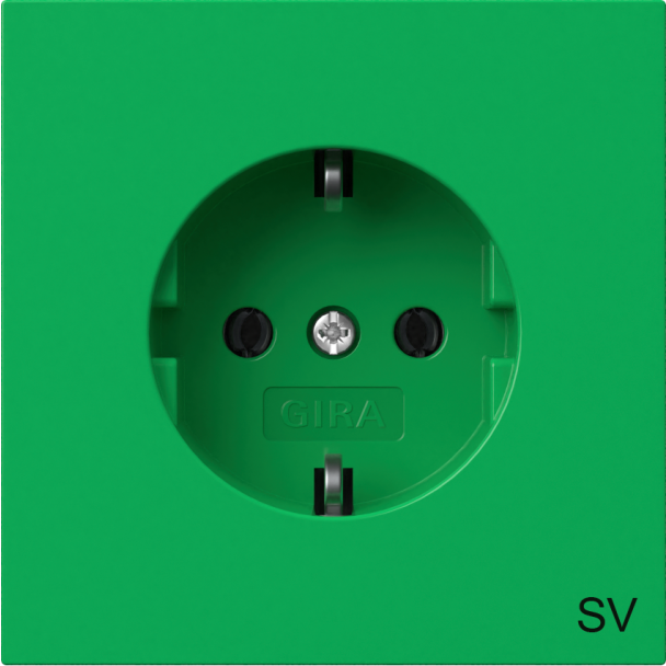 met groene afdekking en opdruk ‘SV’ (veiligheidsspanning) Gira F100 groen glanzend