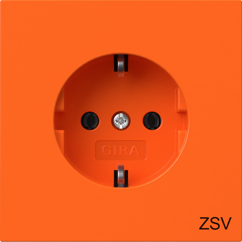 met oranje afdekking en opdruk ‘ZSV’(aanvullende veiligheidsspanning) Gira F100 oranje glanzend