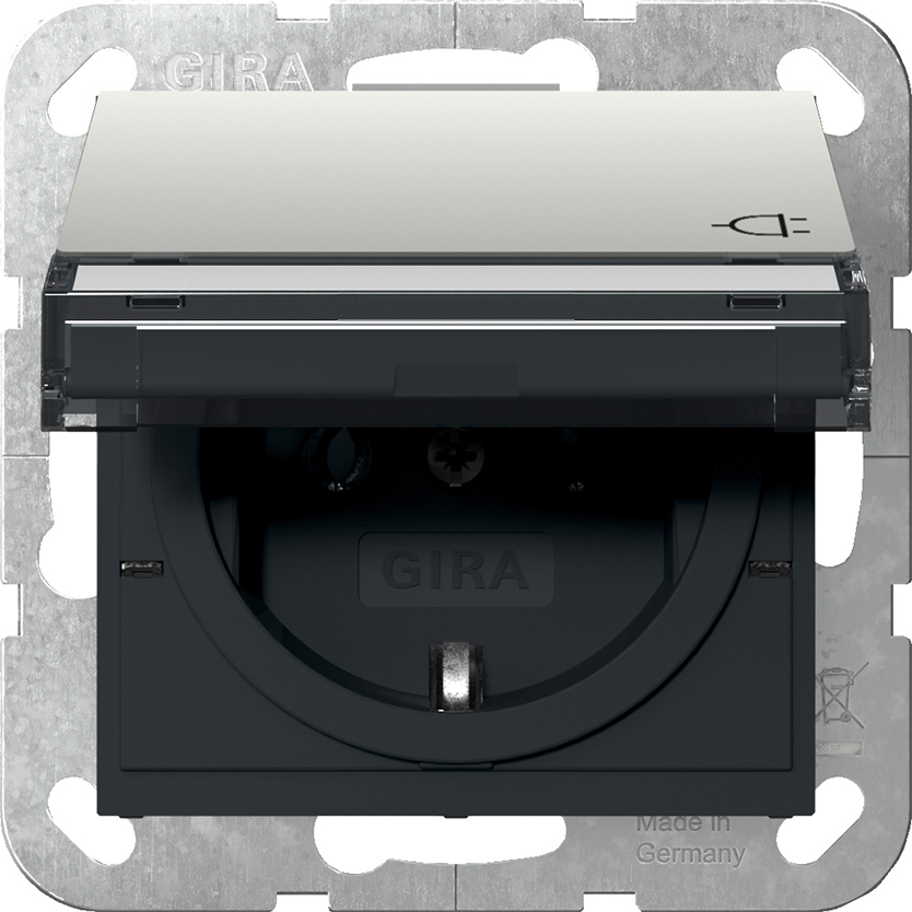 Wandcontactdoos met randaarde 16 A 250 V~ met klapdeksel en tekstkader edelstaal (4410600)