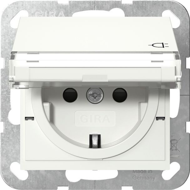 Wandcontactdoos met randaarde 16 A 250 V~ met klapdeksel, tekstkader en zuiver wit glanzend (455703)