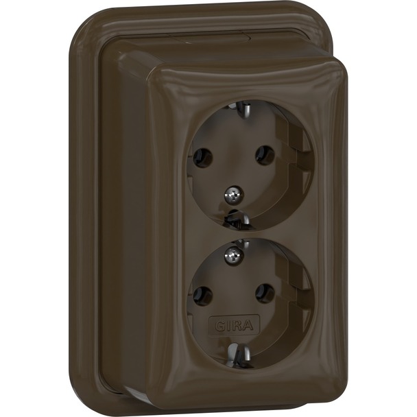 Dubbele wandcontactdoos met randaarde 16 A 250 V~ met montageplaat (478018)