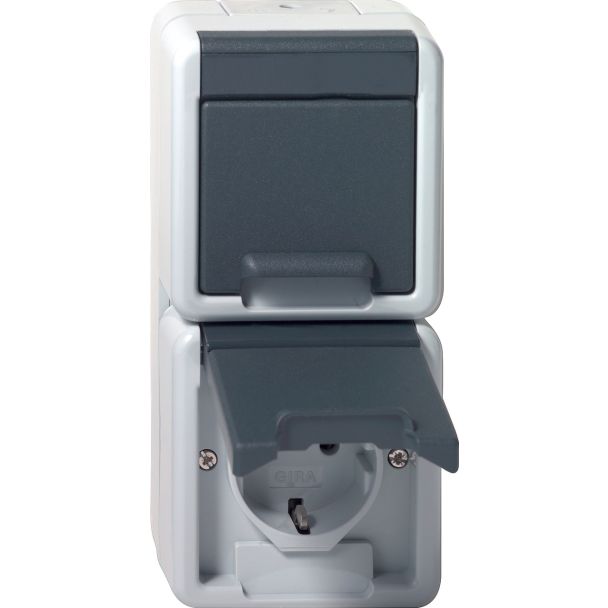 (onderstuk en bovenstuk) voorbedraad Gira spatwaterdicht opbouw IP44 grijs
