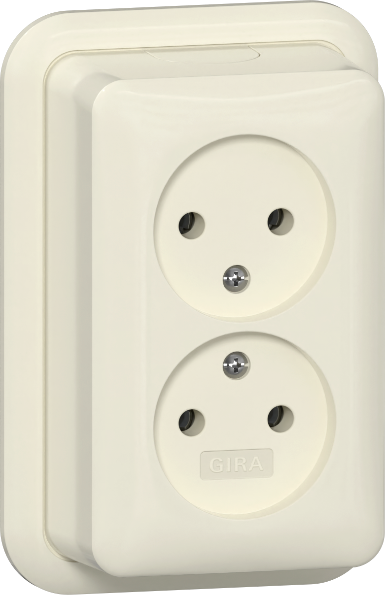 2-polig 16 A 250 V~ met montageplaat en adapter K/P25 Gira System 55 crème wit