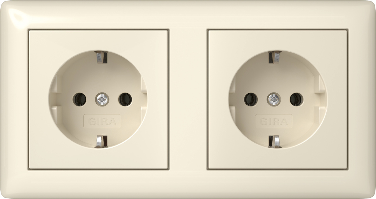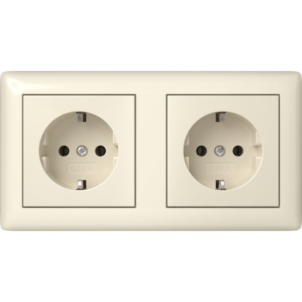 Wandcontactdoos met randaarde 2-voudig 16 A 250 V~ voorbedraad, compleet cremé wit glanzend (482101)