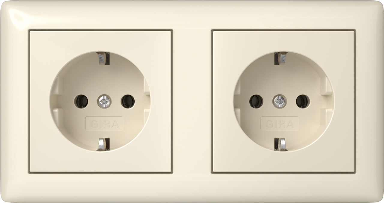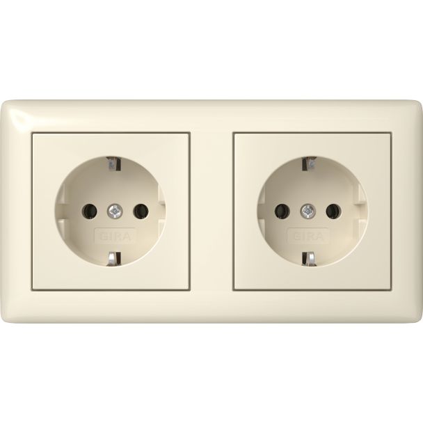 Wandcontactdoos met randaarde 2-voudig 16 A 250 V~ voorbedraad, compleet cremé wit glanzend (492501)