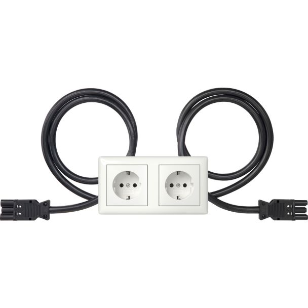 Wandcontactdoos met randaarde 2-voudig 16 A 250 V~ voorbedraad, compleet zuiver wit glanzend (493503)