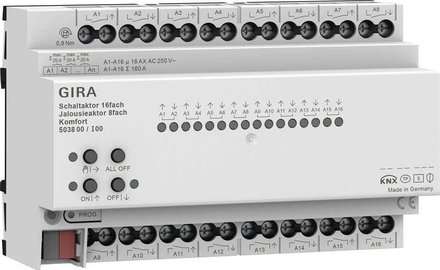 Schakelactor 16-voudig 16 A/jaloezieactor 8-voudig 16 A Komfort voor KNX (503800)