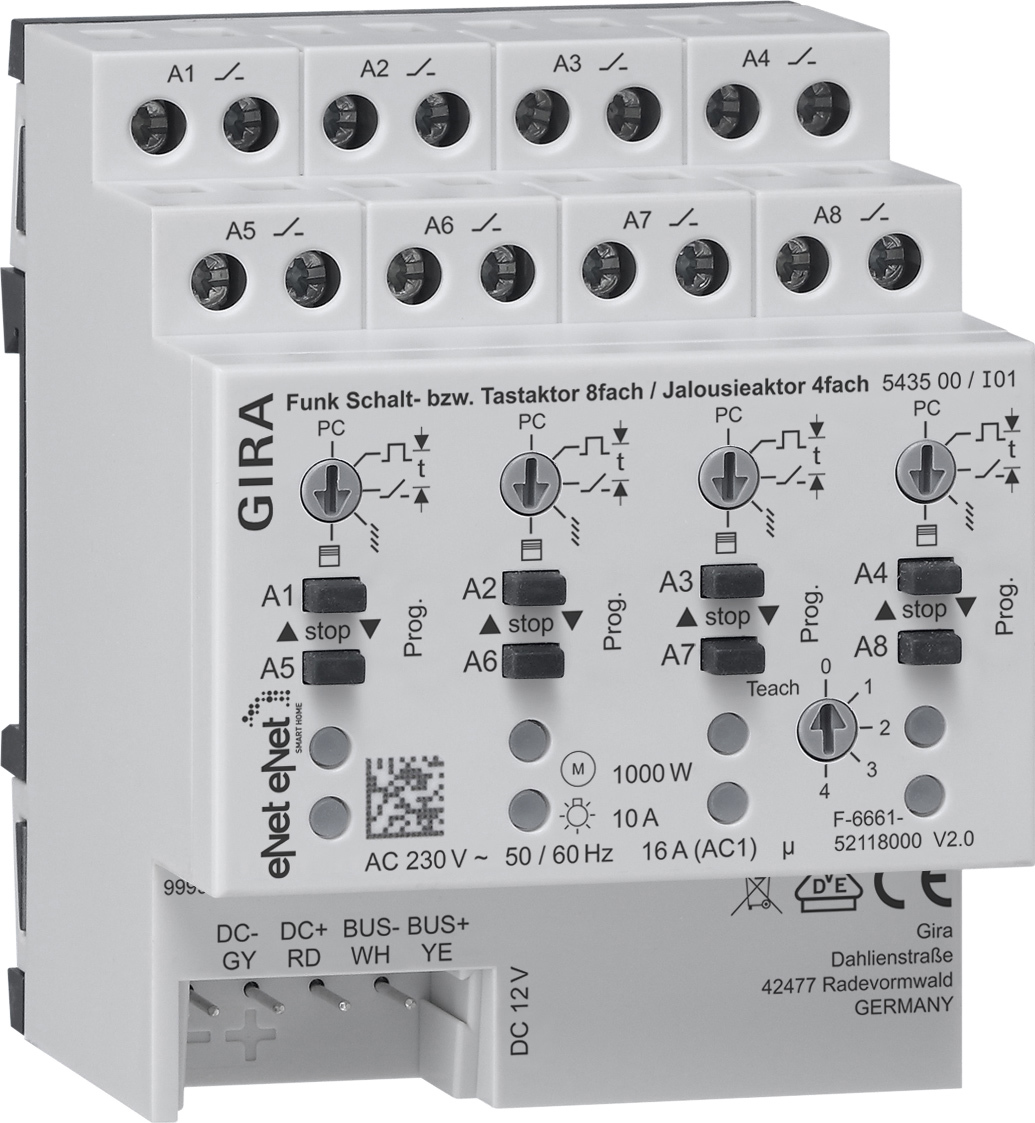 - De eNet draadloze schakel- resp. tast- of jaloezieactor ontvangt via een