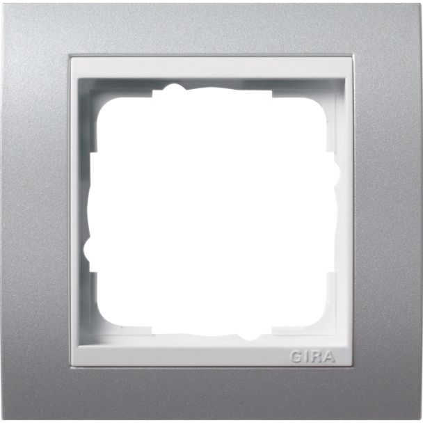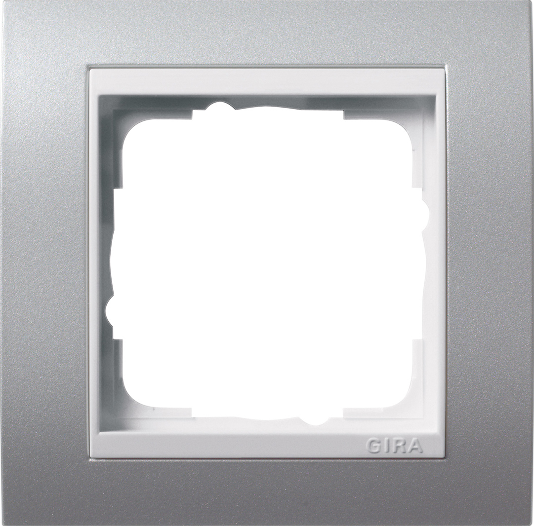 Afdekramen Gira Event kleur aluminium met overgangsafdekplaat zuiver wit glanzend